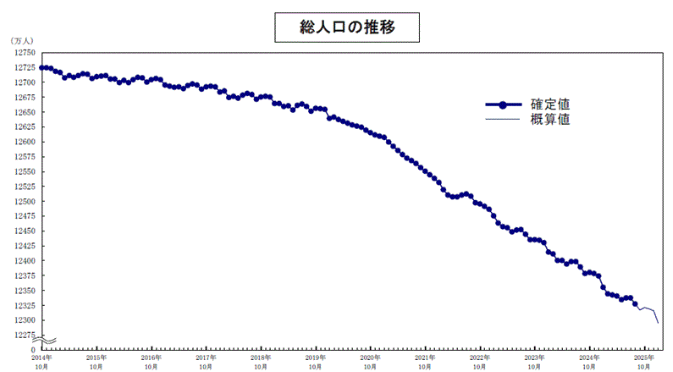 *1 出典:総務省統計局「人口推計」人口推計(2025年(令和7年) 8月確定値), 2026年1月20日公表 , https://www.stat.go.jp/data/jinsui/new.html