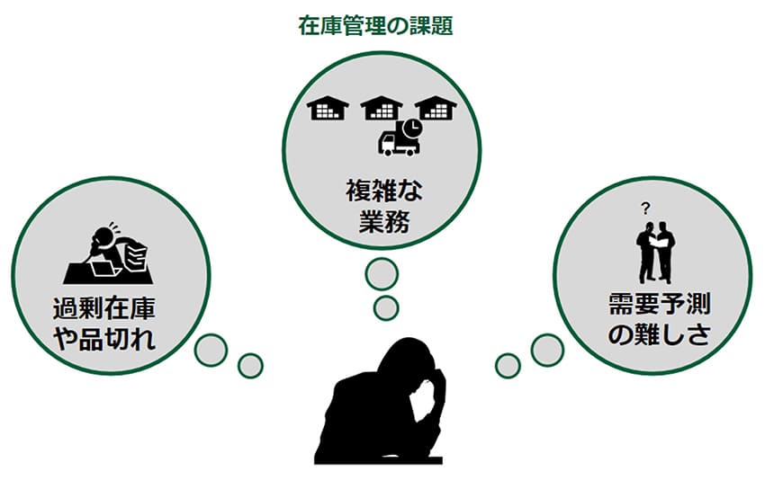 在庫管理では過剰在庫と品切れも大きな課題です。商品に対する需要は時期や季節、市場トレンドなどによって変動するため、常に適切な在庫数を維持することは困難です。在庫管理や発注業務にミスが生じた場合、在庫数に過不足が発生し、過剰在庫や品切れにつながるリスクがあります。