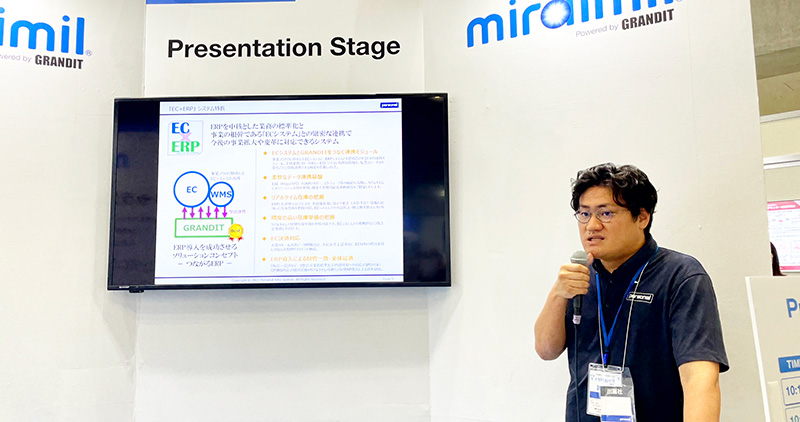ステージでは、各社よりミニプレゼンが行われました。「便利×手軽×中小企業向けクラウドERP『GRANDIT miraimil(グランディット ミライミル)』」では、GRANDIT株式会社 マーケティング室 野田口 が登壇し、次のような講演を行いました。