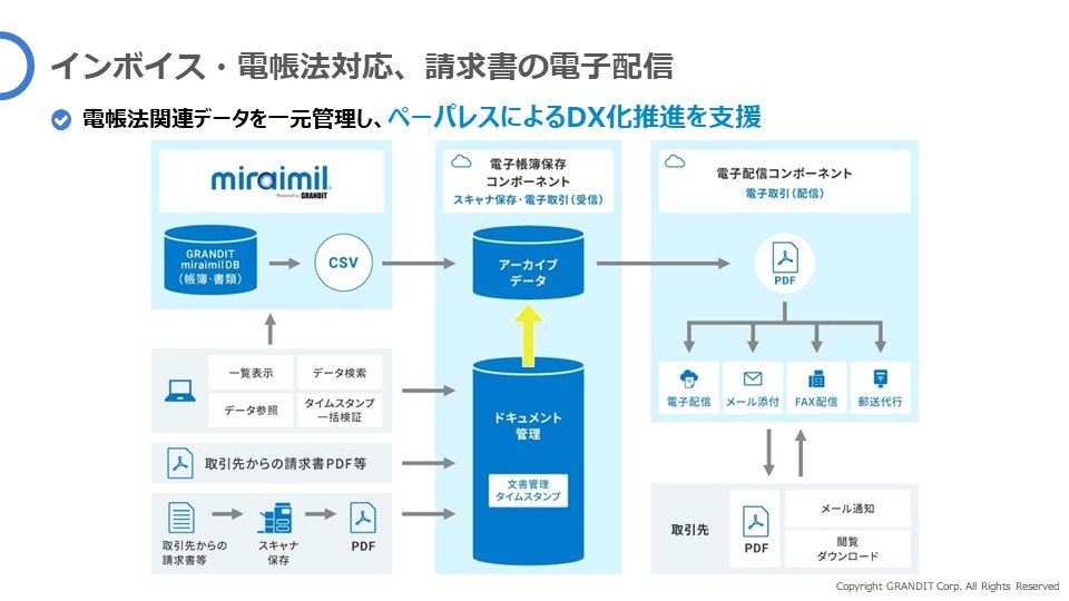 インボイス制度 × 電帳法にも対応。企業をより強くするクラウドERP GRANDIT miraimil