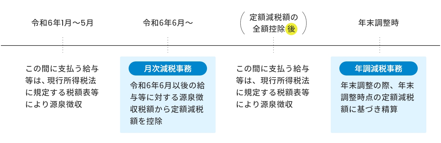 - 年末調整の際、年末調整時点の定額減税額に基づき精算を行う事務(年調減税事務)