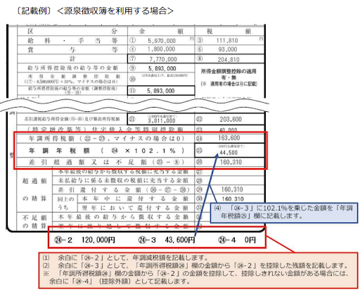 - 年調所得税額から年調年税額を控除した残額