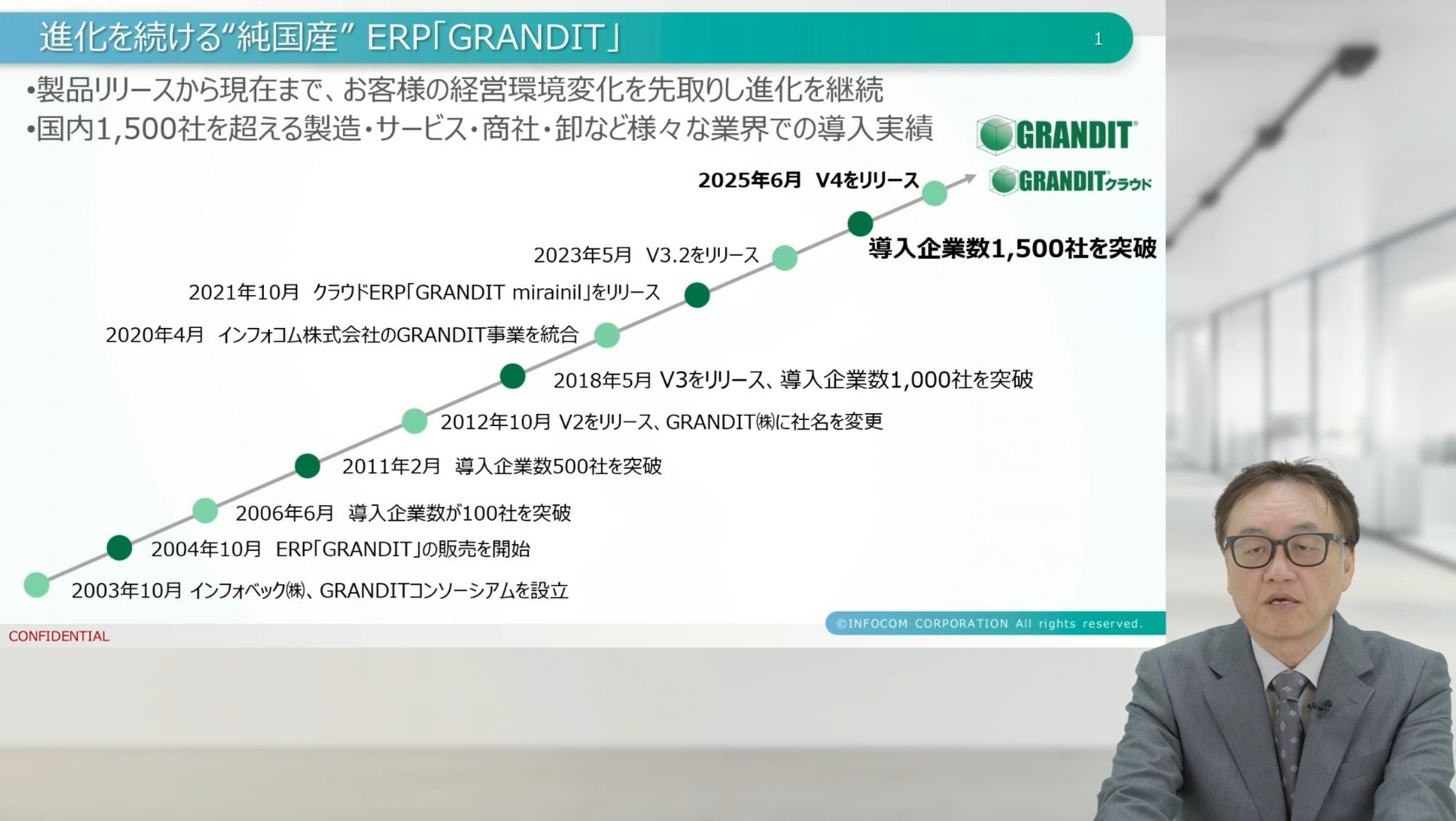 本セッションを通じて示されたのは、ERP投資を「システム更新」ではなく、「経営基盤のアップデート」として再定義する必要性でした。GRANDIT V4は、情報武装を支える統合基盤として、さらにAIと融合しながら進化を続けます。企業が変化に俊敏に対応し、データドリブン経営を実現するための中核として、今後の展開に大きな期待が寄せられます。