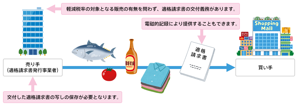 - 課税事業者は相手方から求められた場合には、適格請求書(インボイス)の発行が義務付けられています。