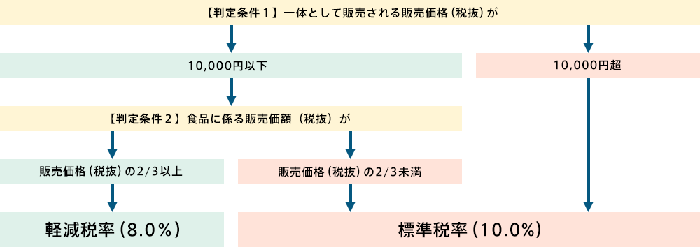 【条件2】一体として販売される販売価格(税抜)のうち『食品に係る価額が3分の2以上』を占めていること
