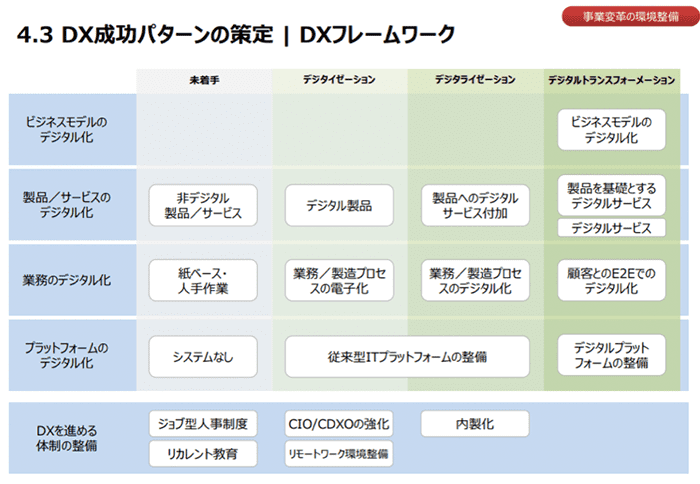 (図表2:DX成功パターンの策定、DXフレームワーク)