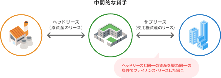 当初の貸手と借手との間のリースを「ヘッドリース」、ヘッドリースにおける借手を「中間的な貸手」といいます。