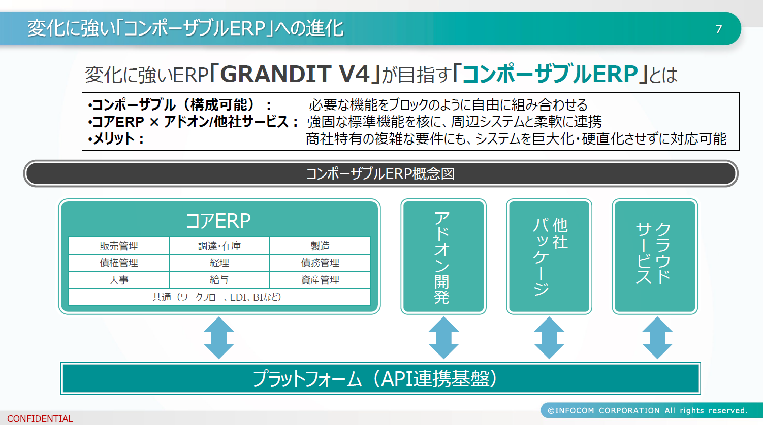 続いて、GRANDIT V4が目指す「コンポーザブルERP」の概念を解説。