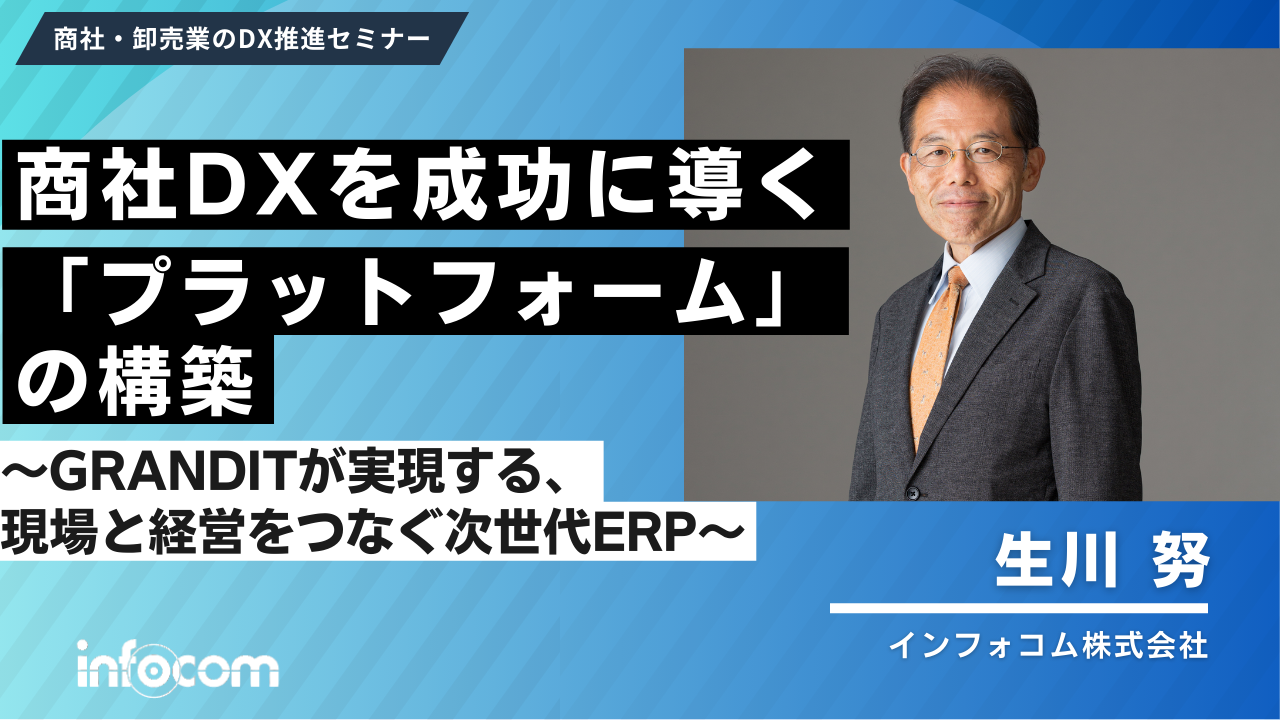 本講演では、純国産・完全Web-ERPとして日本の商習慣に適合しつつ、高い拡張性を誇る「GRANDIT」が、いかにして商社特有の複雑な商流を支え、グループ全体のデータを統合するのかを解説します。